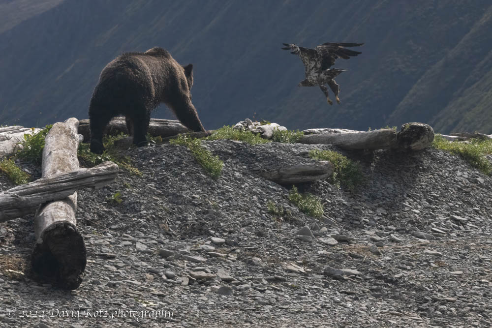 Indeed, as the bear reached the top of the bank, the eagle launched from its perch. Very cool sight.