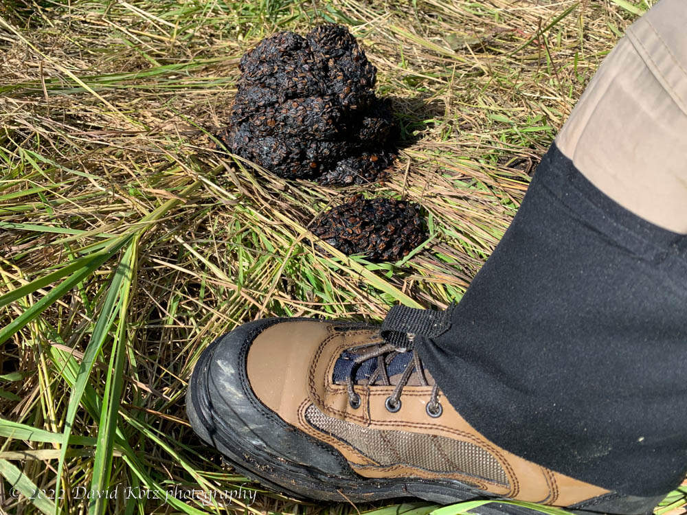 We then left the beach and moved through tall grass – tall enough to obscure any bears that may be present – following well-trodden bear paths. As a courtesy we each warn the person behind us about potential stumbling points – like piles of bear scat, which can be the size of a softball or even bigger.