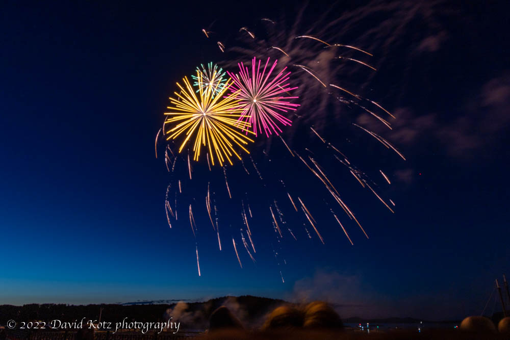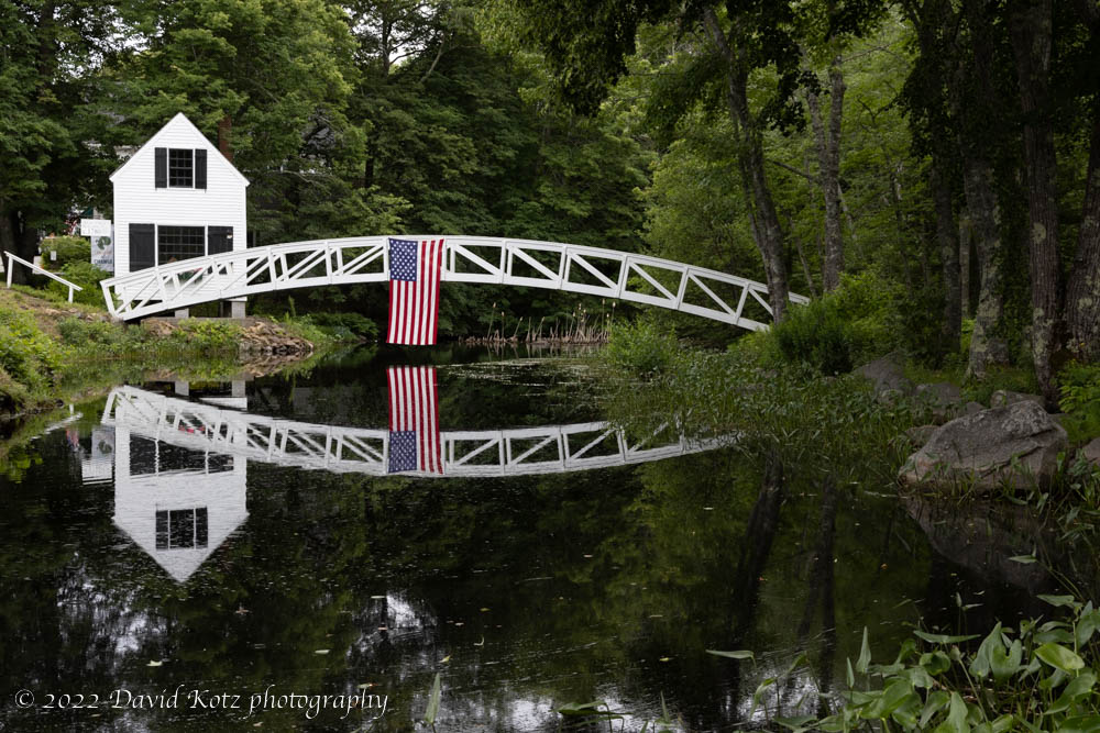 July 4, Acadia National Park, ME. I spent the holiday week exploring this island park; though small, it includes incredible variety of natural and human scenes. Despite the beautiful landscape, I chose two photographs that I thought were especially eye-catching. I like the first photo – of the historic town hall for the tiny town of Mount Desert – because of the reflected curve of the bridge and its American flag. The second photo was my attempt to capture one moment of the incredible fireworks display on the lawn of Bar Harbor’s waterfront. I like the color of the fireworks against the sky’s gradient from blue to black. [Blog post]