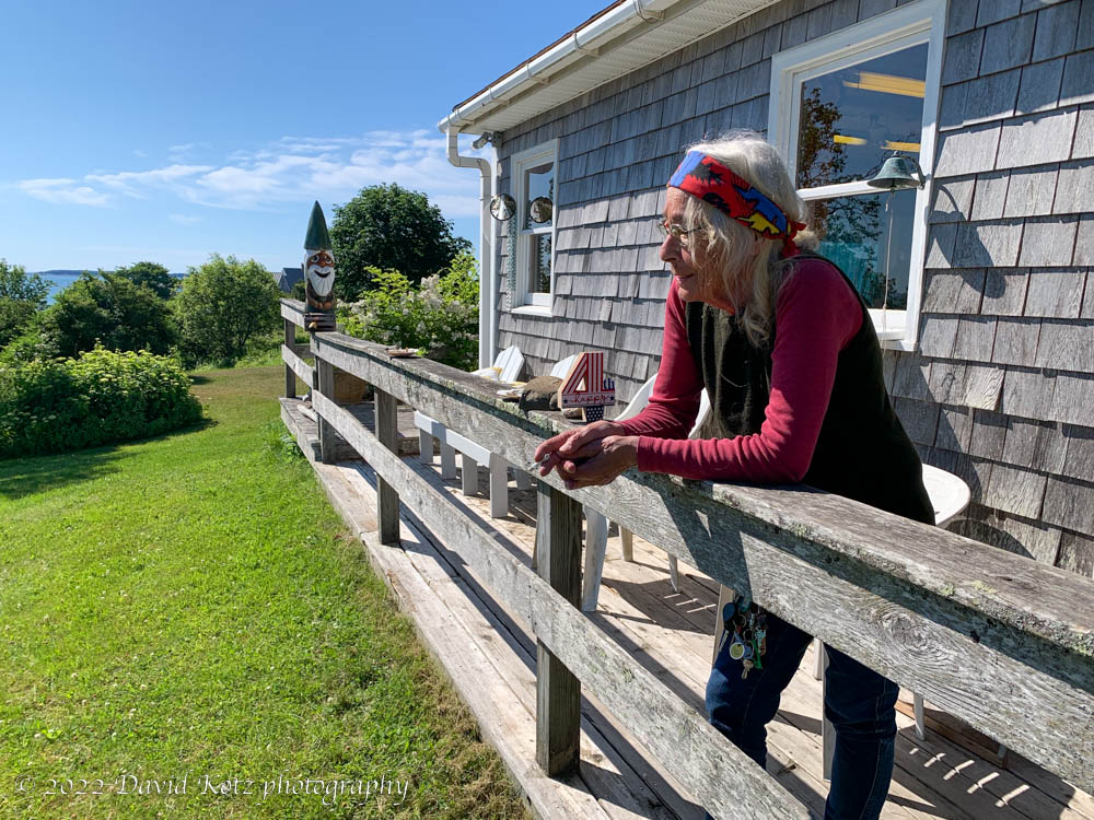 July – Maine coast. The long-time proprietor of Lobster Buoy Campsites – and daughter of its founders – surveys the grounds on the morning of July 4th. I’m drawn to her face, wondering what is on her mind as she looks to something out of frame to the left. The photo has a depth of details, from the cigarette in her hand, to the clattering keychain on her waist, to the “4” candle next to her, to the wall-mounted bell for an unspecified purpose … and the gnome keeping an eye on us. [Blog post]