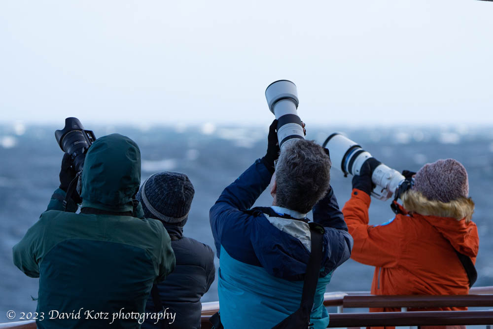 Jack and David (at center) trying to photograph seabirds.