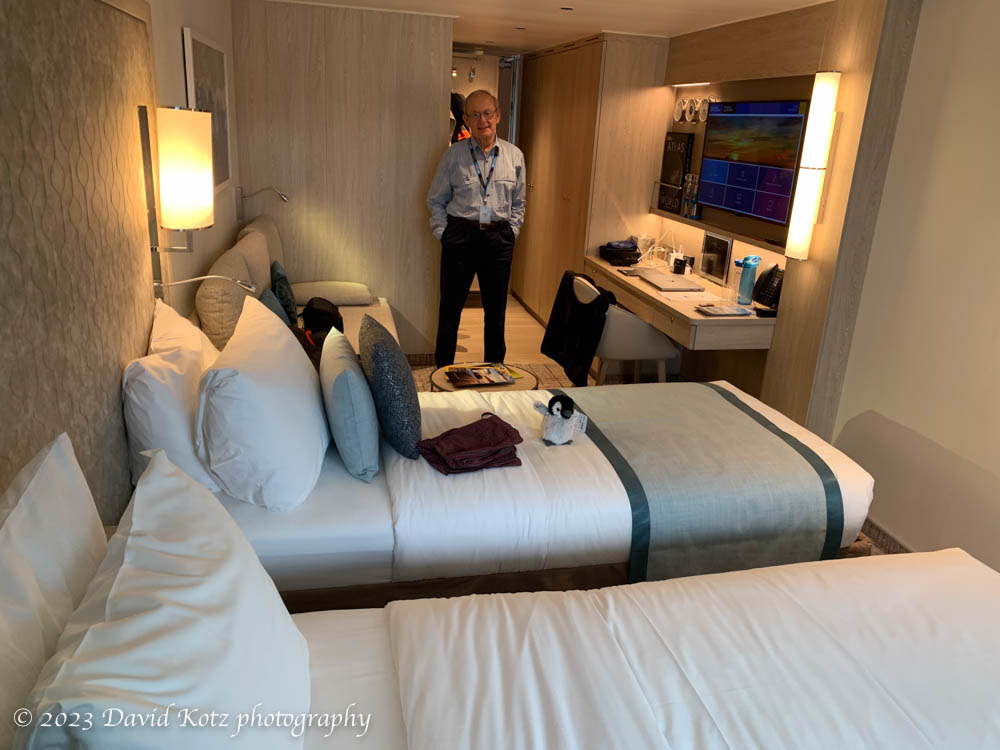 On our trip there were ~106 passengers and 100 staff… including the ship’s crew, the hotel crew, and the expedition crew. The guest rooms were comfortable, spacious, and beautifully outfitted, across four decks. Our cabin was on Deck 5, the lowest deck in which rooms had a balcony.