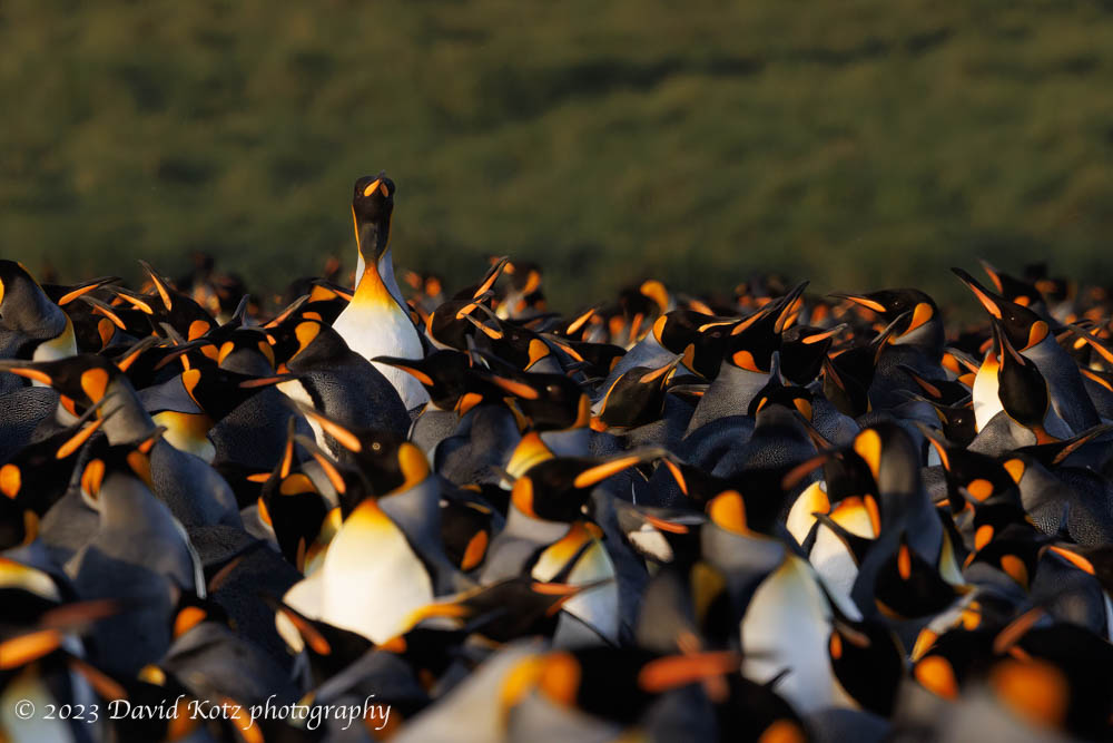 After a delightful morning in Gold Harbour, on the afternoon of 6 March we stopped briefly in a tiny bay on the southeastern point of South Georgia Island – Cooper Bay. We were not able (not allowed?) to land here, so they took us out in groups to tour the bay by Zodiac. On the beach we saw a small, mixed colony of penguins – Chinstrap, King, and Gentoo – and nearby a steep, rocky hillside frequented by Macaroni Penguins.