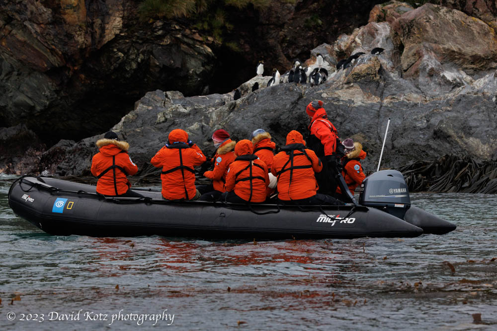 A Zodiac tour gives our first glimpse of Macaroni Penguins.