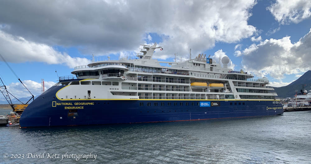 As noted in the prior post, for our trip to the Falkland and South Georgia Islands we first flew to Buenos Aires, and then onward to Ushuaia, Argentina – the southernmost city in the world. We were fortunate to travel aboard the newest ship in the fleet operated by Lindblad Expeditions in partnership with National Geographic: the National Geographic Endurance.