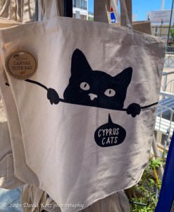 I did a little online research. There are many stories about the cats of Cyprus; according to some sources there are more cats (1.6m) than humans (1.2m), and Cyprus has few programs for sterilization [Reuters]. As a result there are charitable organizations that tend to the cats, like the couple I met this morning. The local vendors appear resigned to their presence – or perhaps appreciate them for their ability to keep rodents and snakes away from the café. They have also become a theme for tourists – I saw them on postcards, fridge magnets, coffee mugs, and tote bags.