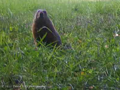 The woodchuck stands to watch and listen – keeping one eye on my camera.