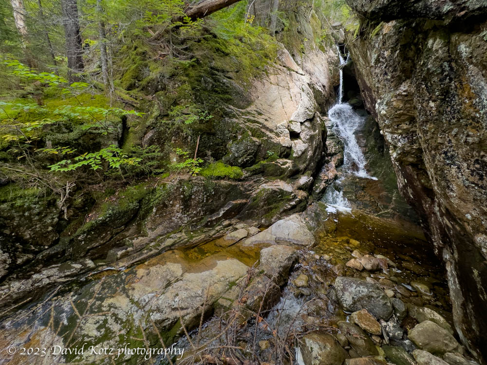 Last weekend I was lucky to snag the last parking spot at the trailhead for the Osceola peaks, even at 7:30am on a Sunday morning. Today I could not find any parking near my desired trail, in the heart of the White Mountains of New Hampshire. I found a parking lot –distant but empty – for a roadside waterfall, and studied the map. I could walk back up the road (emphasis on UP!) or I could bushwhack alongside the waterfall and its brook and join the trail further up slope. It was super steep… but the route would avoid a roadwalk and save time, right? I decided to go for it; wow, was I in for a treat! Sometimes a little bad luck turns into an outstanding opportunity. Read on!