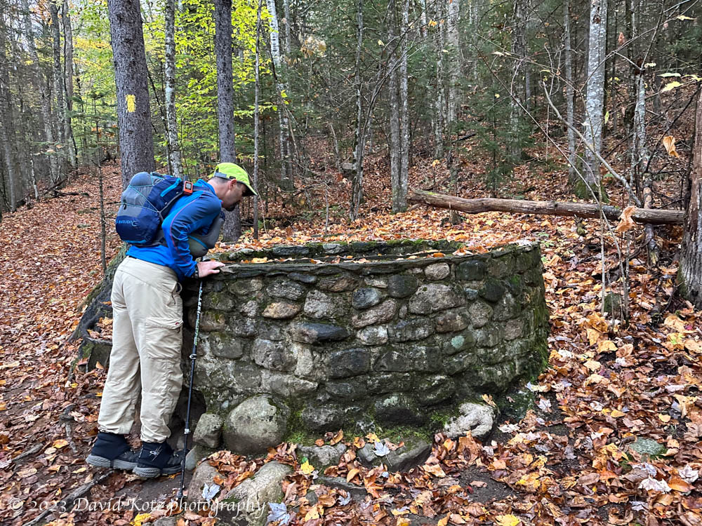 According to AMC guidebook, the fireplace is a remnant of a hiker’s shelter, removed in 1980. We had no view, because of the clouds, but I’ll bet the shelter had a great view!