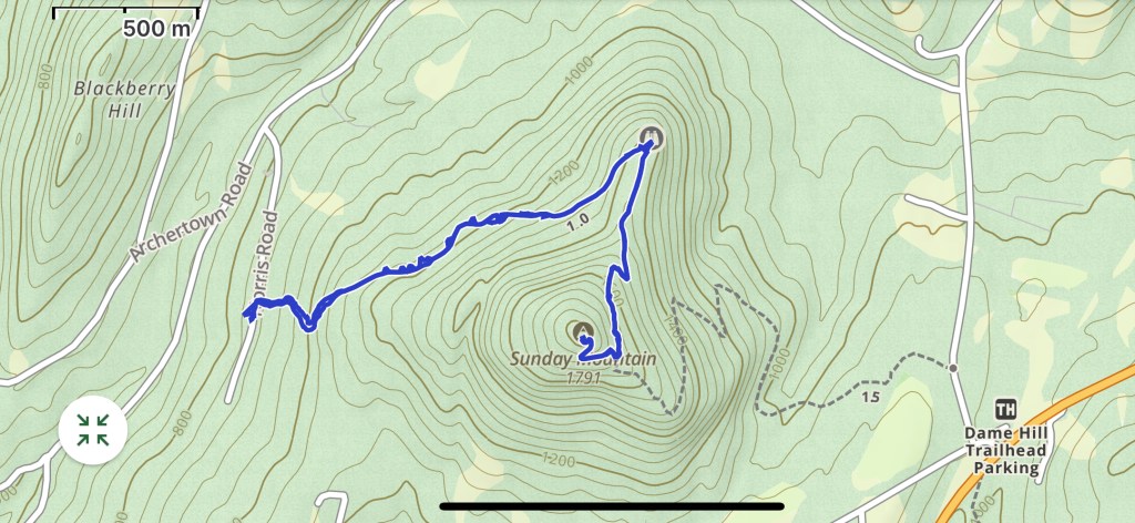 I hadn’t been out hiking for a month, so I was itching to get back out in the woods. It snowed (a lot!) last weekend, but this week’s rain compacted and froze most of that snow into a hardpack. Nonetheless, Tim and I headed out this morning for a quick hike. An overnight snow squall had dusted the forest with a fresh, thin layer of snow, which made for pretty scenery. We chose Sunday Mountain, a forested bump of about 1800′ elevation up in Orford, NH, along the Rivendell Trail.