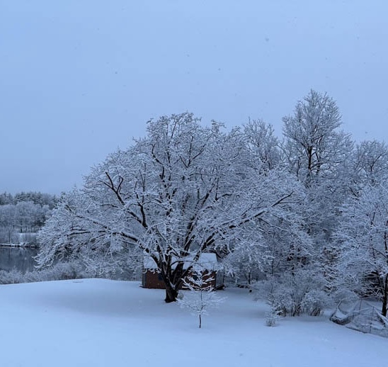 I had already started putting away my winter gear – assuming that, it being April, my winter adventures were at an end. I should know better, because New Hampshire often plays tricks with spring. Three days ago, in the week of April Fools, New England was hit with a powerful nor’easter storm that brought us 40 hours of snowfall. Here at home the snow was wet spring snow – delivering a lot of moisture but melting so quickly that we never accumulated more than 3-6″ of depth. In the three warm days hence, much of that snow has melted, or will be gone soon.