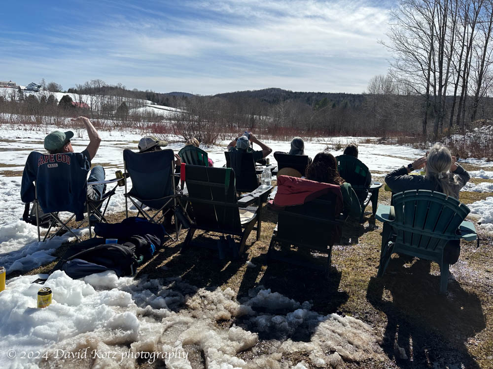 We were fortunate to be able to spend the afternoon today visiting some colleagues at a lakeside home in northeastern Vermont – where the skies were clear, the sun was warm, and last week’s snow was quickly thinning. Shortly after 2pm we settled into lawn chairs, pulled out our solar-eclipse safety glasses, and enjoyed watching the moon take over the sun… read on!
