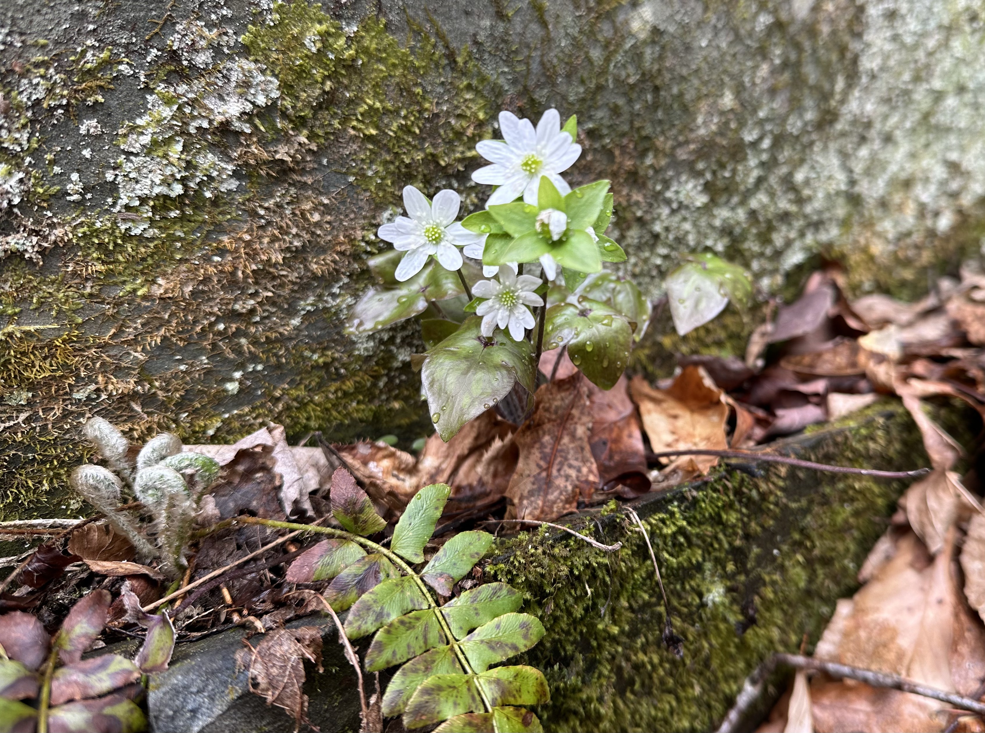 red trillium (not a great photo, you can see only two of three petals!)bloodrootA steep, rocky outcrop with a carpet of green emerging…