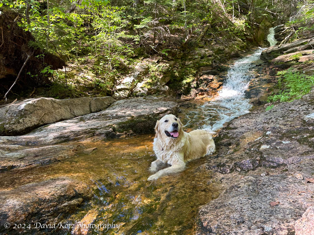 The climb to Mount Willey was steep, especially toward the end. Our canine companion – the friendly and energetic dog named “Karhu” – was always eager to wallow in a stream or mudpuddle, keeping cool as the day grew warmer.