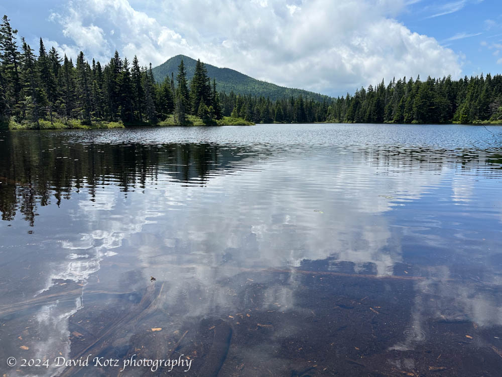 From here it was a long, gentle downhill to Unknown Pond. This rather unassuming name belies the beauty of the pond, over which The Horn looms as a backdrop. We nodded at the tentsite (mental note, come back here to camp someday!) and headed down the unnamed stream that drains the unknown pond, ticking off the final miles back to our starting point.