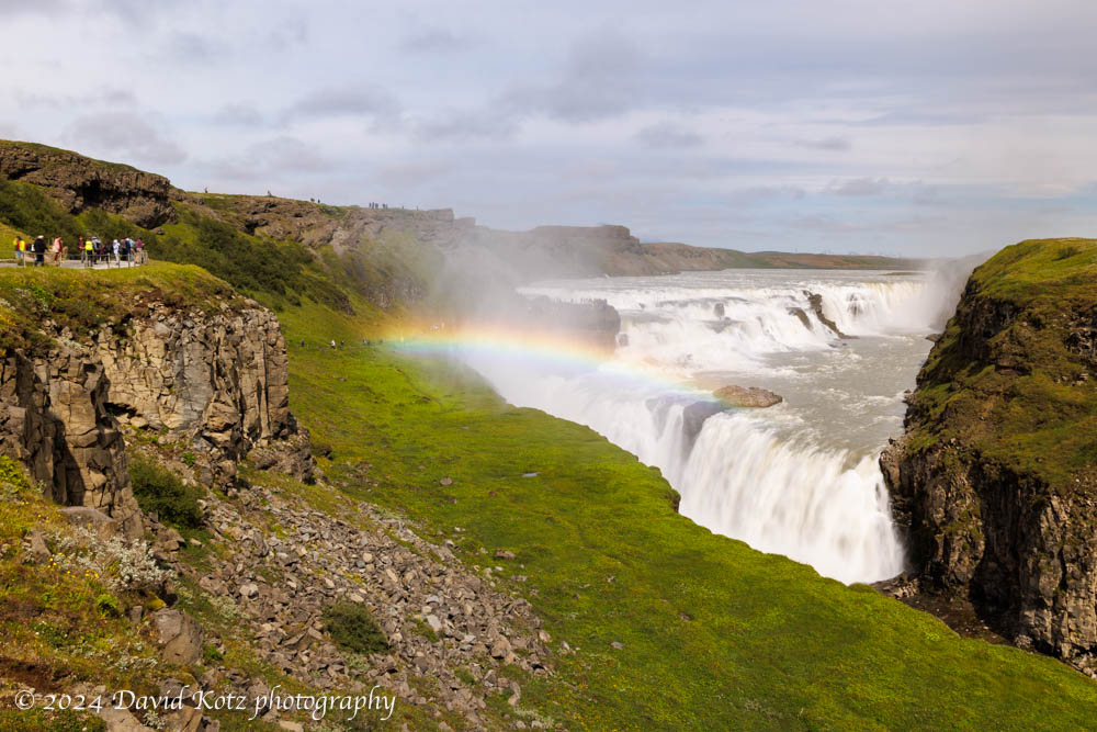 It’s hard to imagine driving around the Golden Circle without a stop at the massive Gullfoss waterfall. Gullfoss (literally, ‘gold waterfall’) is an incredible sight, 32m tall and 175m wide, with two major falls intersecting as they fall into a deep ravine. I was glad to have packed rainpants and raincoat, which allowed me to spend time near the thundering waterfall, covered in spray, photographing the falls and surrounding wildflowers! For more photos, see the gallery.