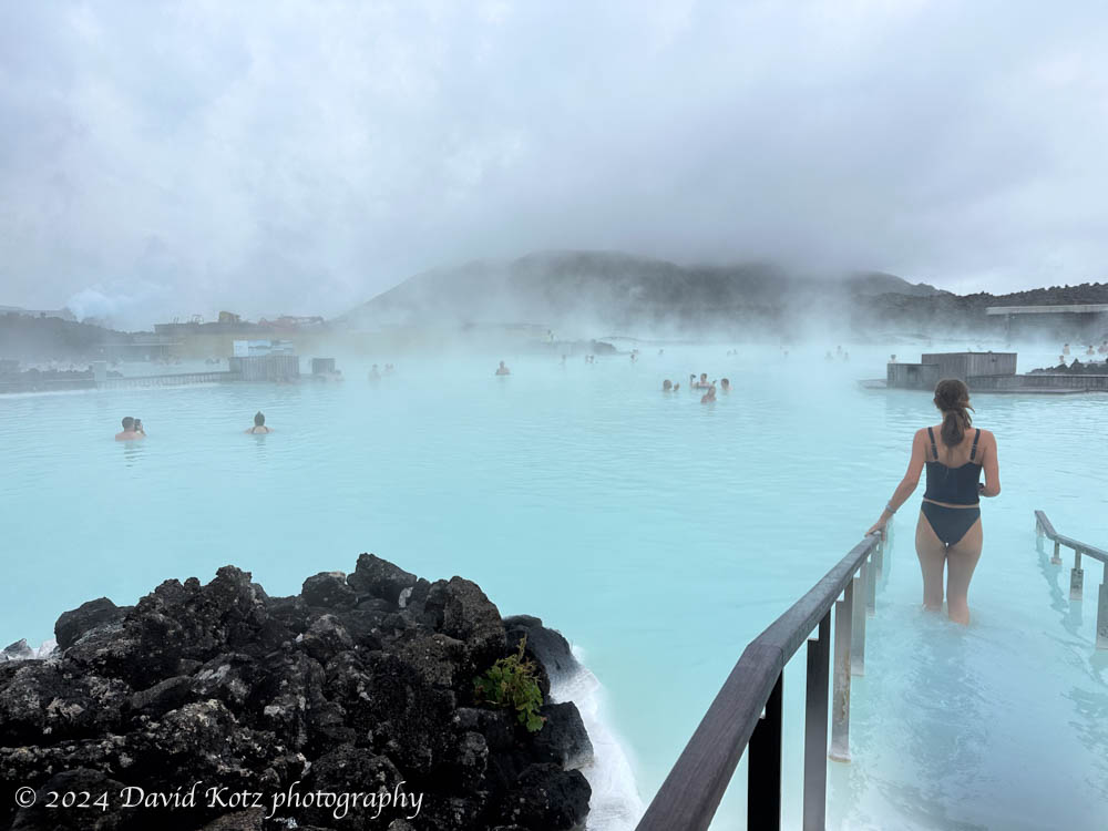 Early on our last morning in Reykjavik, under gray skies threatening drizzle, we drove an hour over to the Blue Lagoon, a now-famous spa in which hot mineral water is pumped up from far underground and into a broad pool set among an ancient lava landscape. We enjoyed a couple hours of warm bathing, juice drinks, and skin-cleansing facial ‘masks’. For me, one of the most interesting aspects was the approach – at one point, the road ended in a massive lava flow, less than two months old, and was diverted onto a recent, temporary gravel path that wound around the flow to the site of the Blue Lagoon. The spa had been spared, most likely because the authorities had earlier built massive dikes (from old lava rocks) that help steer new flows around this and other critical infrastructures. [CNN news covered the eruption in late May 2024] For more photos, see the gallery.