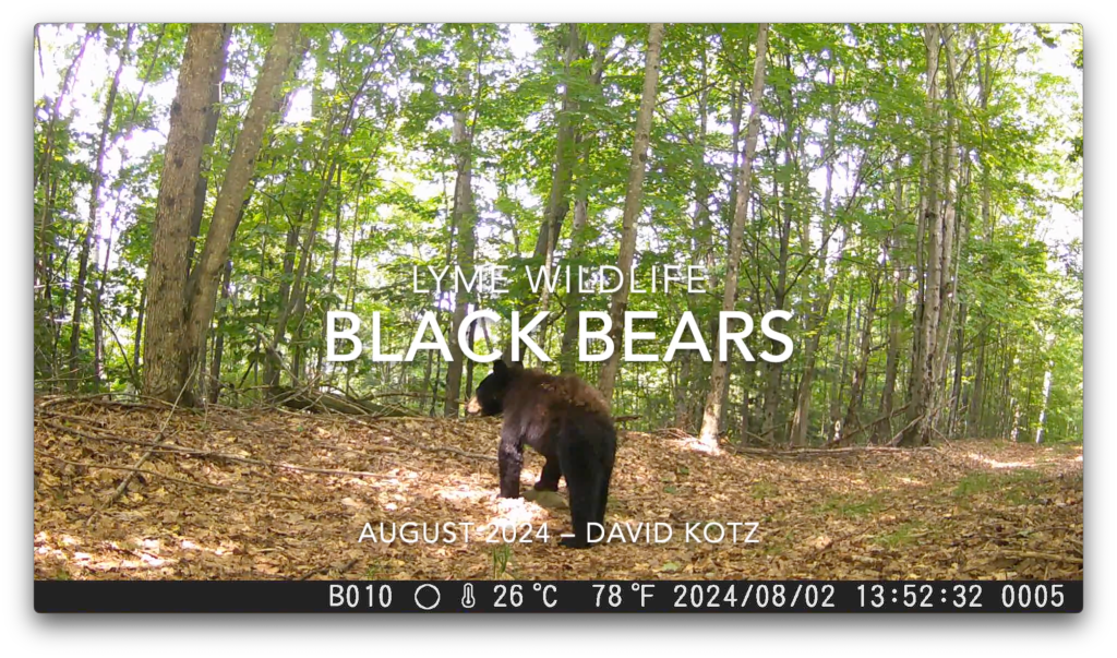 The black bears were busy too. I’m aware of at least two adults and at least two cubs who roam the same territory I wander. This month’s video gives us a close-up of the two cubs, peacefully exploring the vernal pool; several scenes in which a bear gets up-close and personal with my cameras; and a brief clip that shows two adults together (the first time I’ve seen that!).