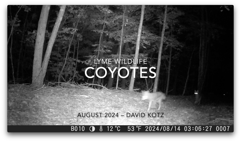 I woke at 2am to the howls of the coyotes, and they sounded close. It’s increasingly common for us to hear coyotes near our home, but in 33 years living in New Hampshire I’ve only once seen a coyote in-person. (They are mostly noctural, and I am not!) As noted in my post from June, I was thrilled when my wildlife camera caught a daylight video with a litter of coyote pups visiting a vernal pool. So, as I lay awake listening to the coyotes last night, I imagined those little pups were out there now, learning the ways of their pack, and wondered whether they might be in view of of one of my cameras.