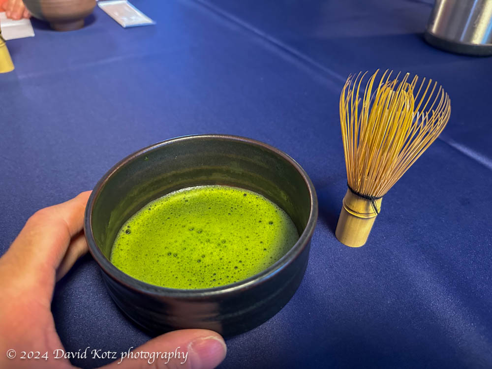 After lunch on-board ship, we made a quick trip to Sengan-en garden. Built in 1658 by Shimadzu Mitsuhisa, leader of the Shimazu clan that ruled this region, it was used by the family until the middle of the 20th century. Today the gardens include a beautiful palace, several shrines, many beautiful trees and ponds, a tea house, and a beautiful view of Sakurajima across the bay. We went into a tea house for a demonstration of a traditional tea ceremony, making and drinking matcha tea.