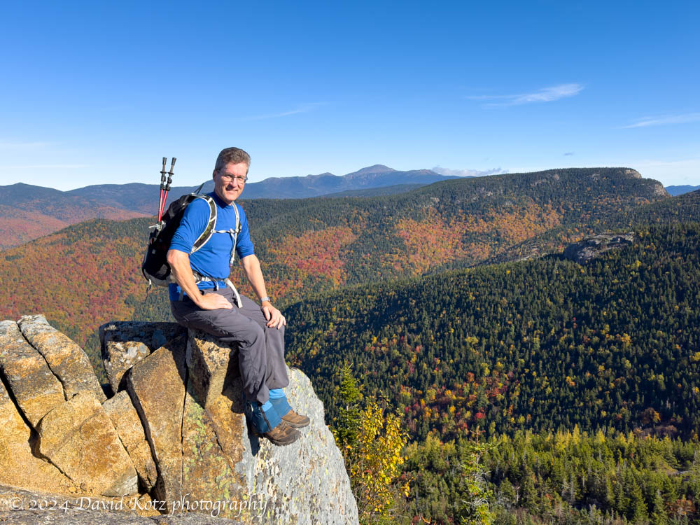 I hit the trail a little after 8am and ground my way up the steep, rocky trail, and was soon scrambling over open rocky ledges and expansive granite slabs, the views behind me growing ever grander. I reached the summit in just over an hour, and was immediately surrounded by some of the most spectacular fall scenery I’ve had the pleasure to experience. This summit allows broad views north into Crawford Notch, along the spine of the southern Presidential Range, with a clear view of Mount Washington; to the east, the eponymous shape of Stairs Mountain; to the northwest, the Pemigewasset Wilderness; to the west, the massive pyramid of Mount Carrigain (on which I stood less than two months ago); to the southeast, the rolling hills of Maine; to the southwest, the Tripyramids alongside the Kancamagus pass.