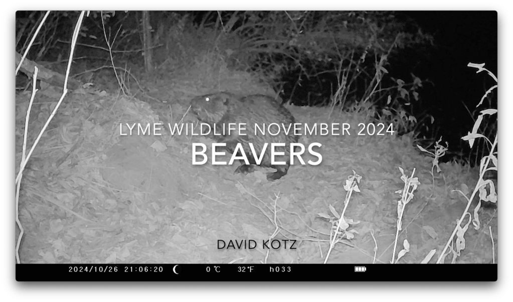 In this second video, at the other location, we see the beavers maintaining their dam. Sometime after November 20 there was heavy rainfall, and the stream swelled, damaging their dam. You’ll see them busily trying to repair the dam… but also dragging new material off into the darkness for some other purpose.