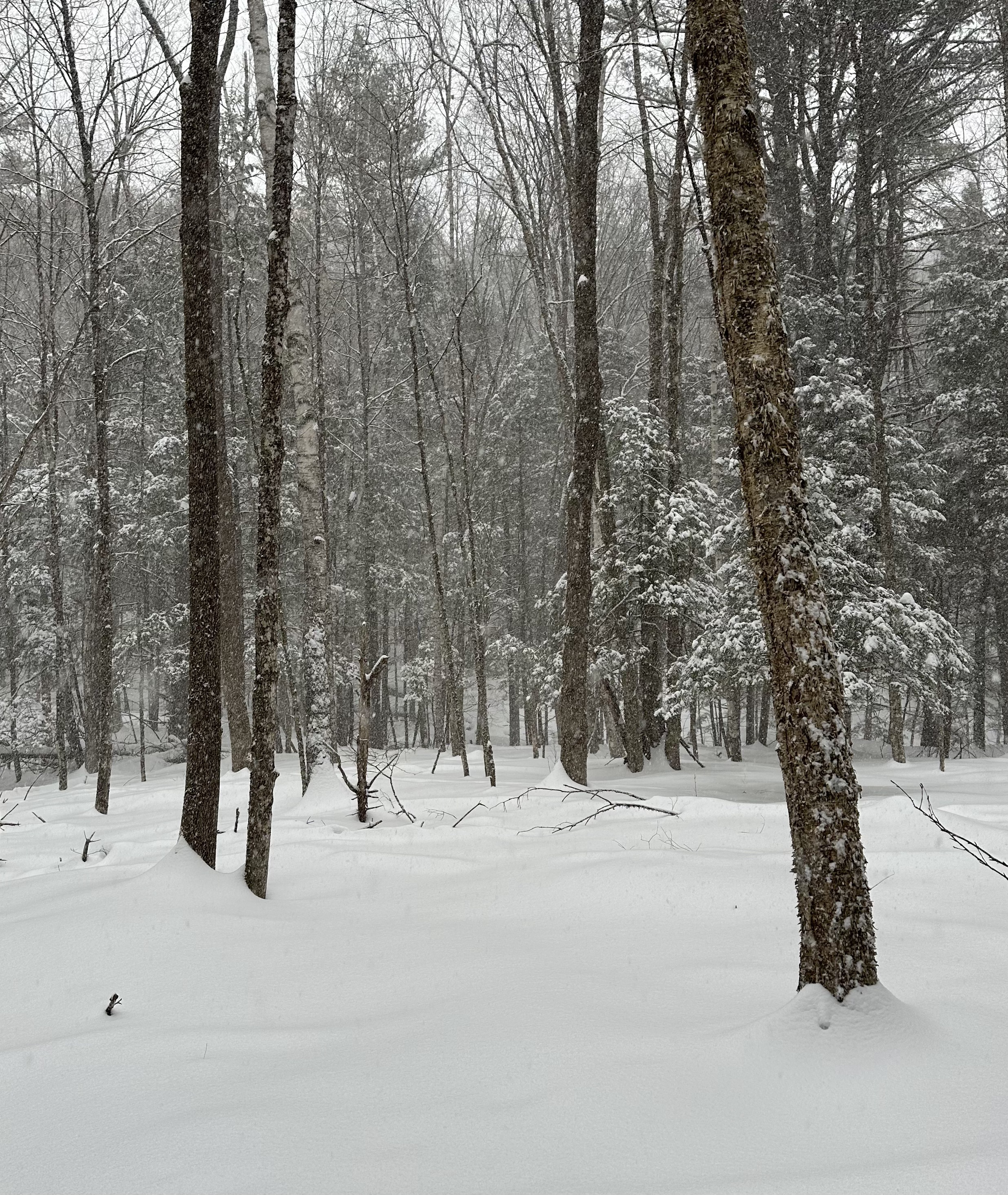 Winter truly arrived in February, with deep cold and deep snow throughout most of the month. I had nine cameras out the field – but decided, mid-month, to relocate half of them to a new area of Lyme (New Hampshire). Although the terrain is similar – rolling hills, mixed forests, rocky slopes, low elevation – I was looking for new opportunities. That day (February 16) was an incredible winter’s day: a light snow was falling as a large winter storm was winding down, so I snowshoed through deep, soft powder around my usual loop, picking up cameras. The next day, I skied a loop in a different part of town, setting up cameras in promising new locations. What did the cameras find? Check out these four short videos (all less than three minutes)… read on!