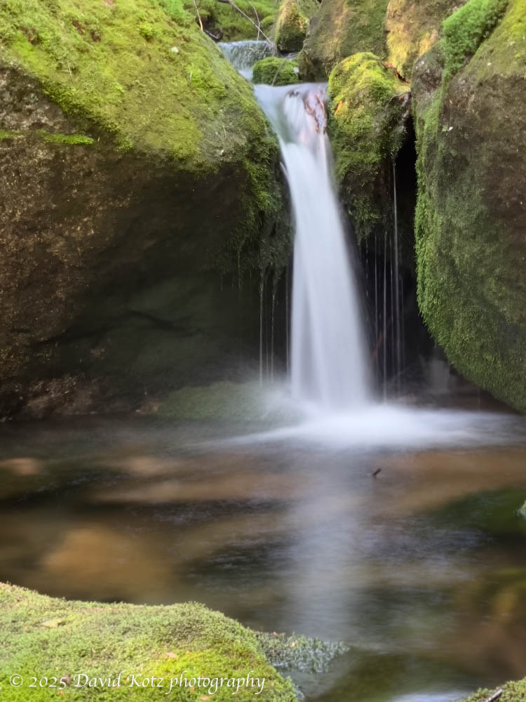 It was a steamy morning. Although I arrived at the trailhead early (8am), the temperature was already in the mid-70s ºF (mid-20s ºC), and extremely humid. I resigned myself to swimming uphill through a steamy soup of moisture, amplified by overnight rains that had left the trails wet and the trees dripping. To make it worse, I slipped at the first stream crossing and dunked both of my feet, leaving me to hike the rest of the day in wet feet. At least there were some pretty scenes along Drake’s brook.