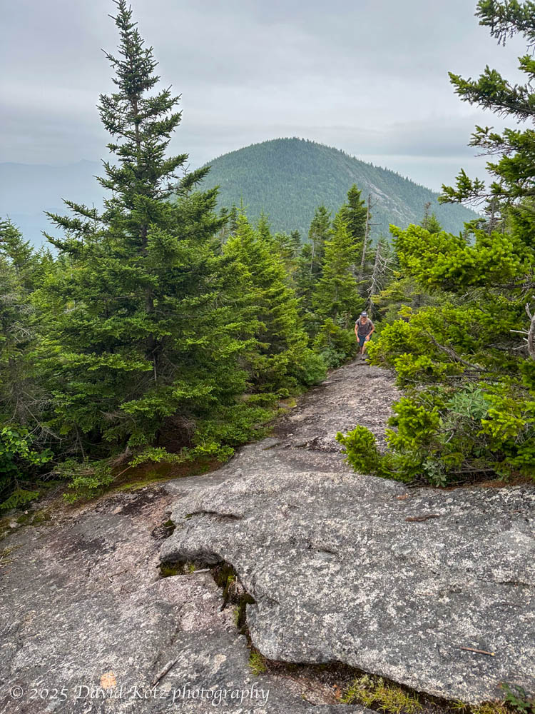 This meant one helluva scramble up the south side of all that visible baldness. The trail now bypasses for reasons you described re: your descent. One achieved upward progress by depending on the traction from PF Flyer or Keds high-tops. Assists consisted of grasping tufts of poorly-anchored blueberry shrubs, taking care not to lift and compromise the tenuous mossy anchor patches.