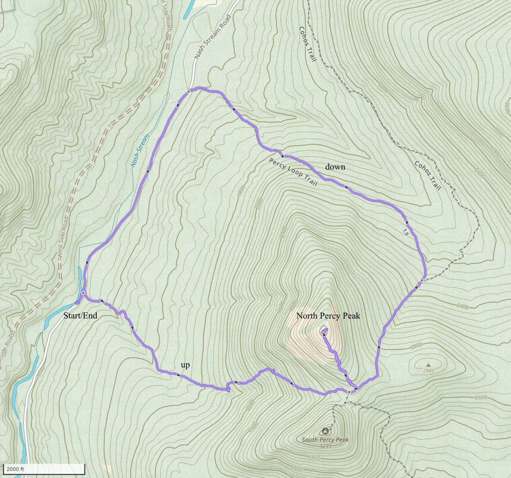 David- Krusch made the North Percy ascent just last week! Like you, he and his son skipped the South Peak. Unlike you, he had nice weather and enjoyed the panorama.