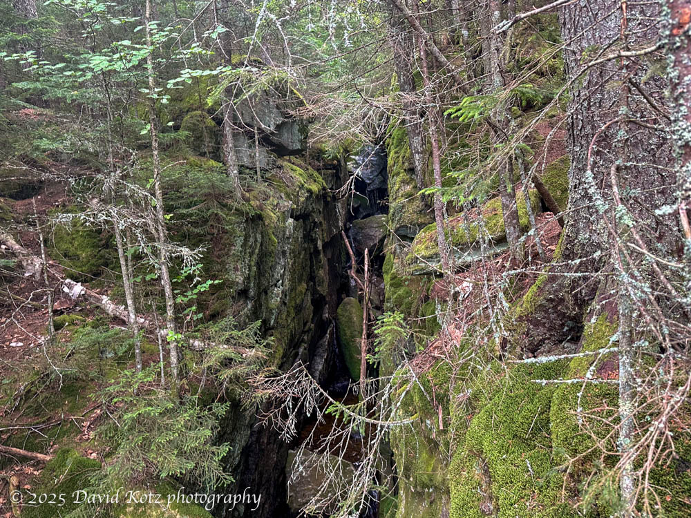 On the way down we followed an informal trail down Kendall Brook to view a ‘flume’, where the brook flows through a dike (deep gorge) in the bedrock. It was hard to see down into the gorge, safely!