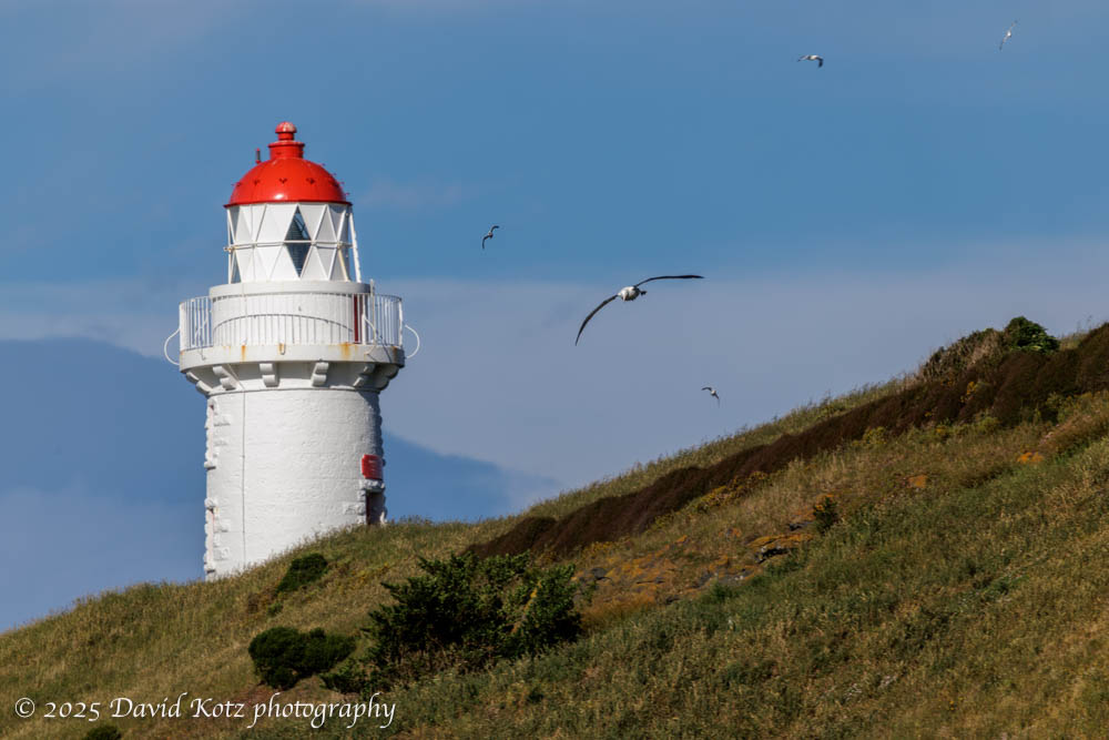 As we sailed back out of Otago Harbor, at the end of the day, we enjoyed watching at least a dozen Royal Albatross soaring above the windswept surf below the Taiaroa lighthouse at the tip of the peninsula. Beautiful!