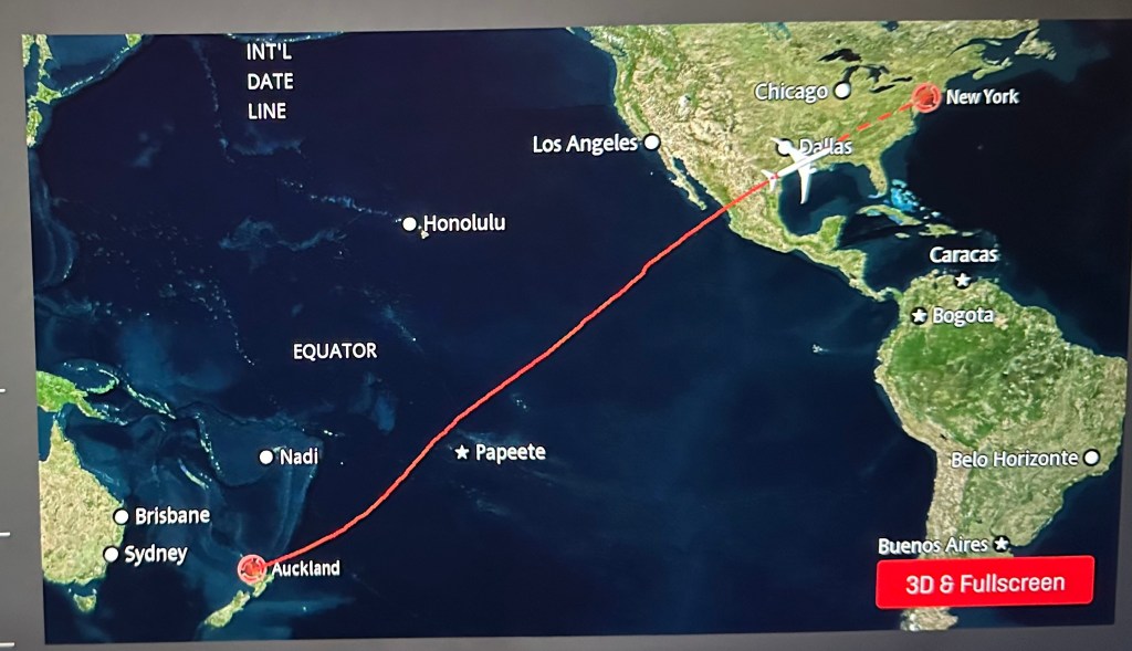 Auckland to New York was 15.5 hours cruising at 50,000′ in a straight line: