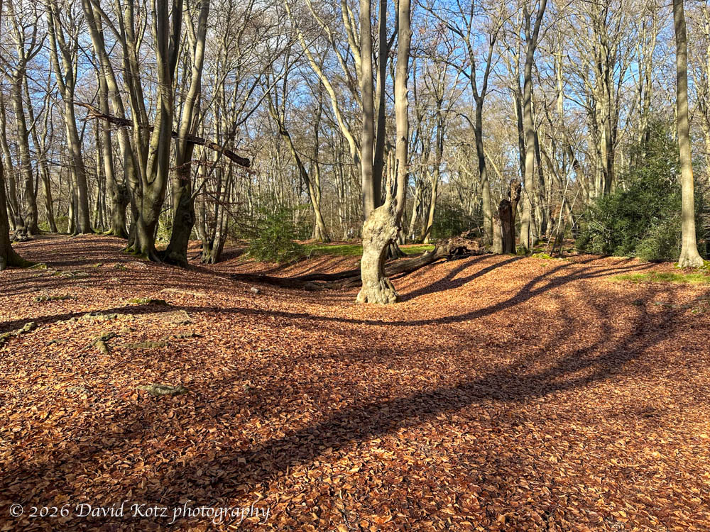 My route rambled northeast along wide, forested paths. The trees – mostly beech, oak, hornbeam – are still bare of leaves, but the lack of undergrowth gives the forest an open, rambling feeling. The terrain is largely flat, though I did enjoy a section that rolled gently up and down small ridges. Perhaps the most interesting site was Loughton Camp – a hundred meters off the trail, and easily overlooked if it were not for the informational signs. This ‘camp’ is 2,500 years old, a set of Iron-Age earthworks apparently raised for protection of cattle, or perhaps defense against invaders. Although it’s not much to look at, today, it’s magical to wander over berms and ditches while thinking of those ancient people who built them.