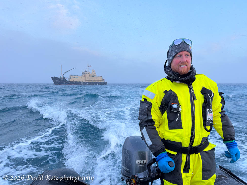 I stepped down onto the far shore, and into the shallow waves washing ashore. The suit kept me warm and dry, even with water trickling into my boots. I watched a massive walrus lumber toward the stony shore, slip into the kelp swirling at the edge the surf, and then casually let the waves roll him over into the sea. [Watch the video!]