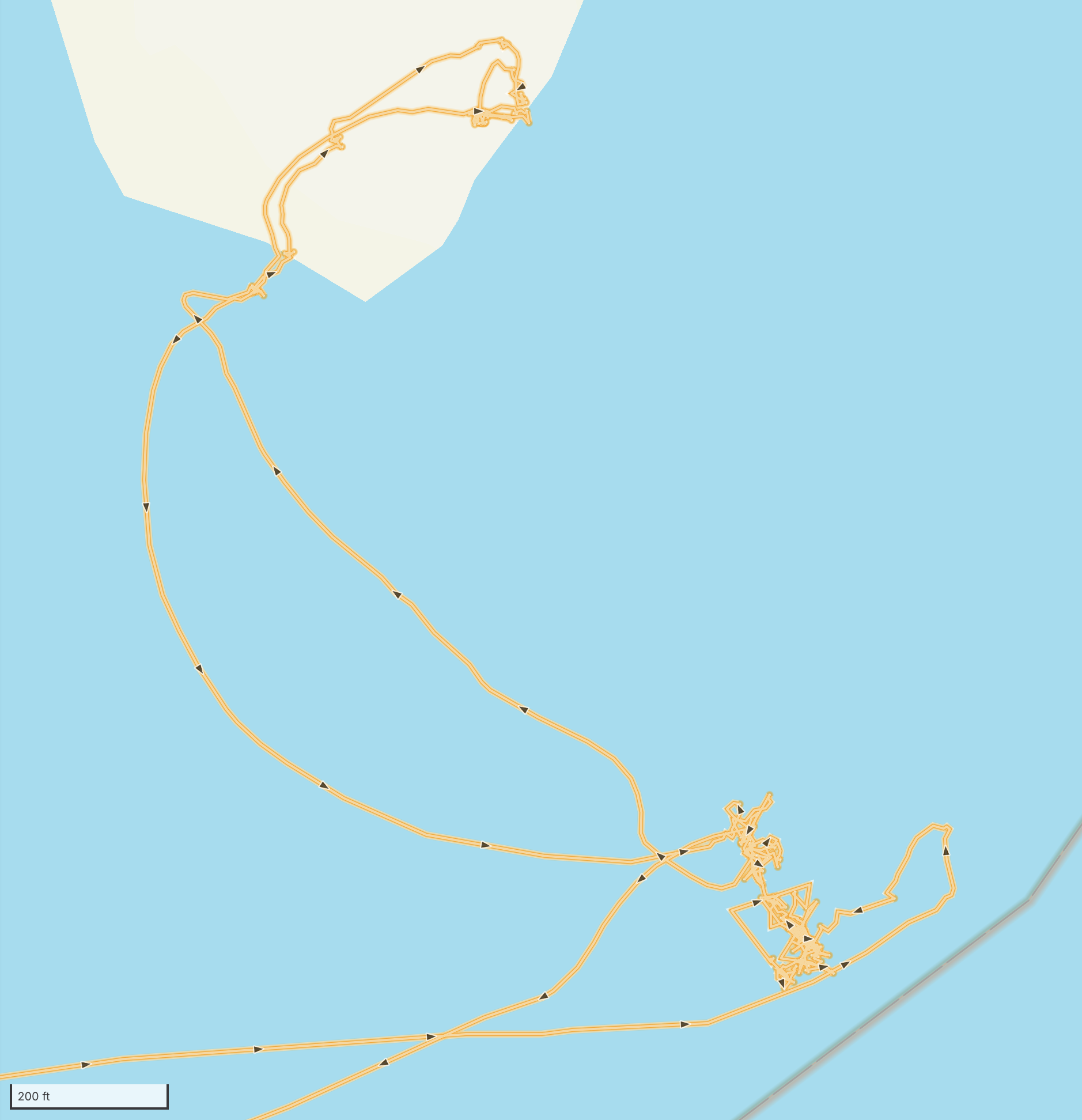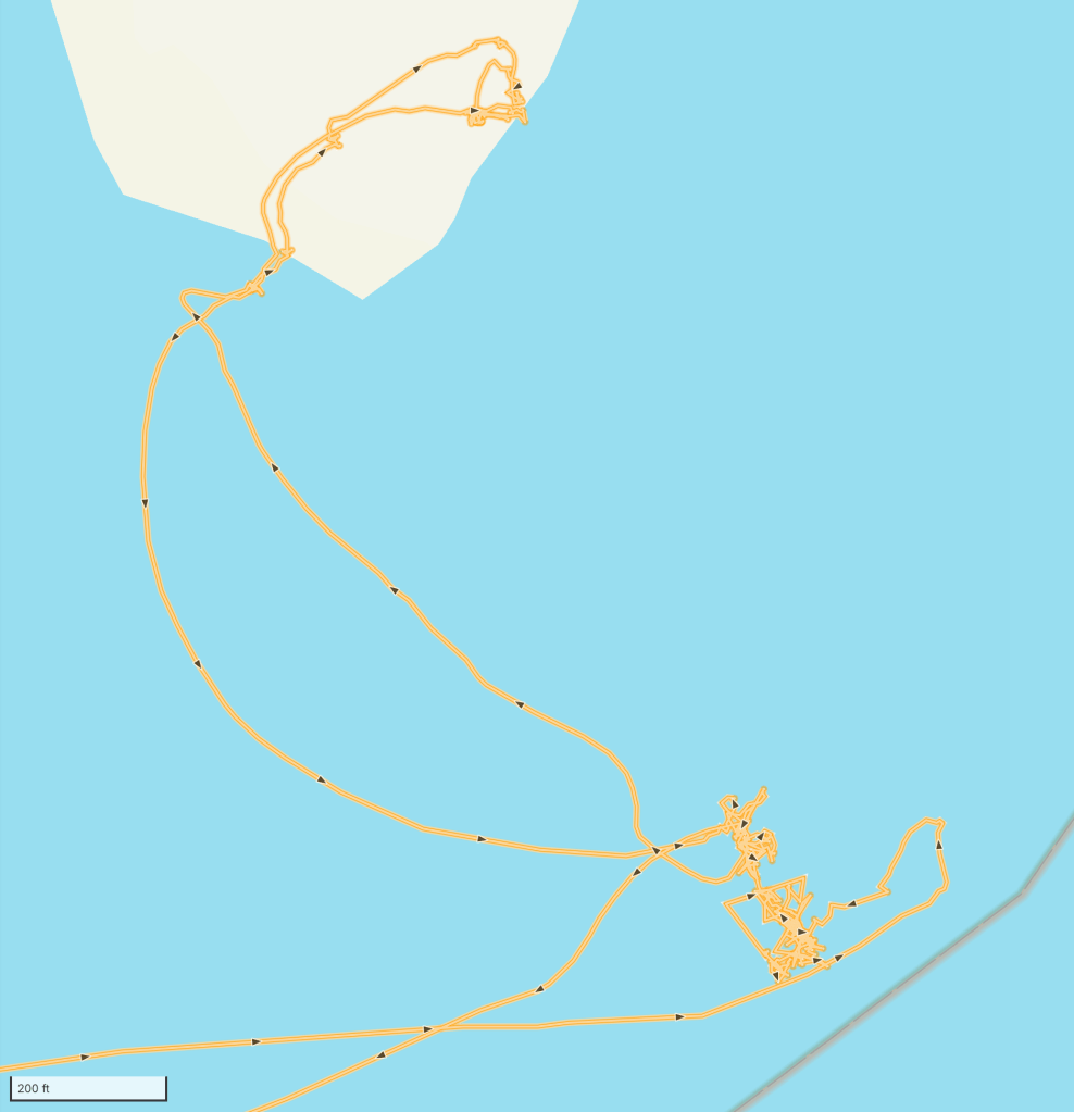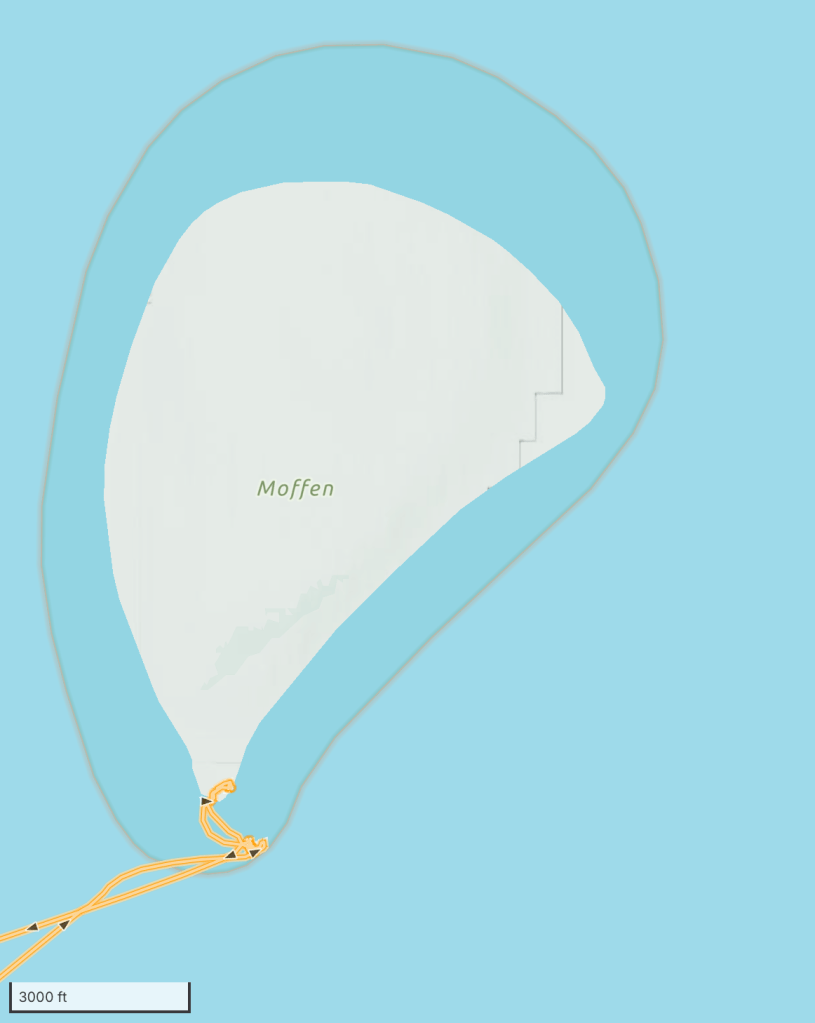 The island is not very big! In the two maps below you can see the track for our boat arriving at the southern tip, and our short walk over to the opposite shore where the walrus were hauled out. You can also see how the ship drifted around its anchor before and after going ashore. On shore, I recorded our location as 80°0’33.1499″ N 14°28’39.0121″ E… approximately 600 nautical miles (roughly 1,100 kilometers or 690 miles) from the Geographic North Pole.