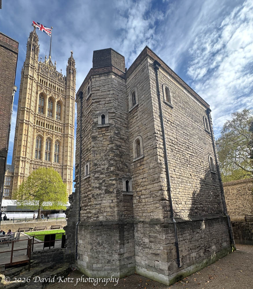 The thing about London is, well, one can be walking down the street and come across a 14th-century tower tucked in between modern buildings. I’d noted this historic building before, during one of my random perambulations in Westminster. Today, it was open for visitors, so I popped in. From behind, it had a lovely view across the street to Westminster palace, where the Victoria Tower appeared brilliant on this pretty spring day.