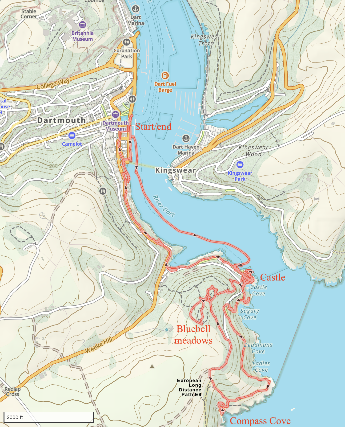 Dartmouth College has been a major part of my life – as a student, professor, parent, and spouse – for over four decades. I am proud to be part of the extended community of this Ivy-League university that dates back to 1769, founded even before the United States. And yet, although I’ve long been aware it was named after the Earl of Dartmouth, in England, I’d never had a chance to look deeper into the origin of its name. Until today! I spent a beautiful spring afternoon exploring the picturesque village of Dartmouth, nestled along the banks of the River Dart within sight of the river’s mouth, which is defended by a Castle dating back to 1388. In addition to exploring this Dartmouth’s many historical milestones, my hike (30th consecutive weekend!) led me to one of the most spectacular wildflower meadows I’ve ever seen, in peak bloom!