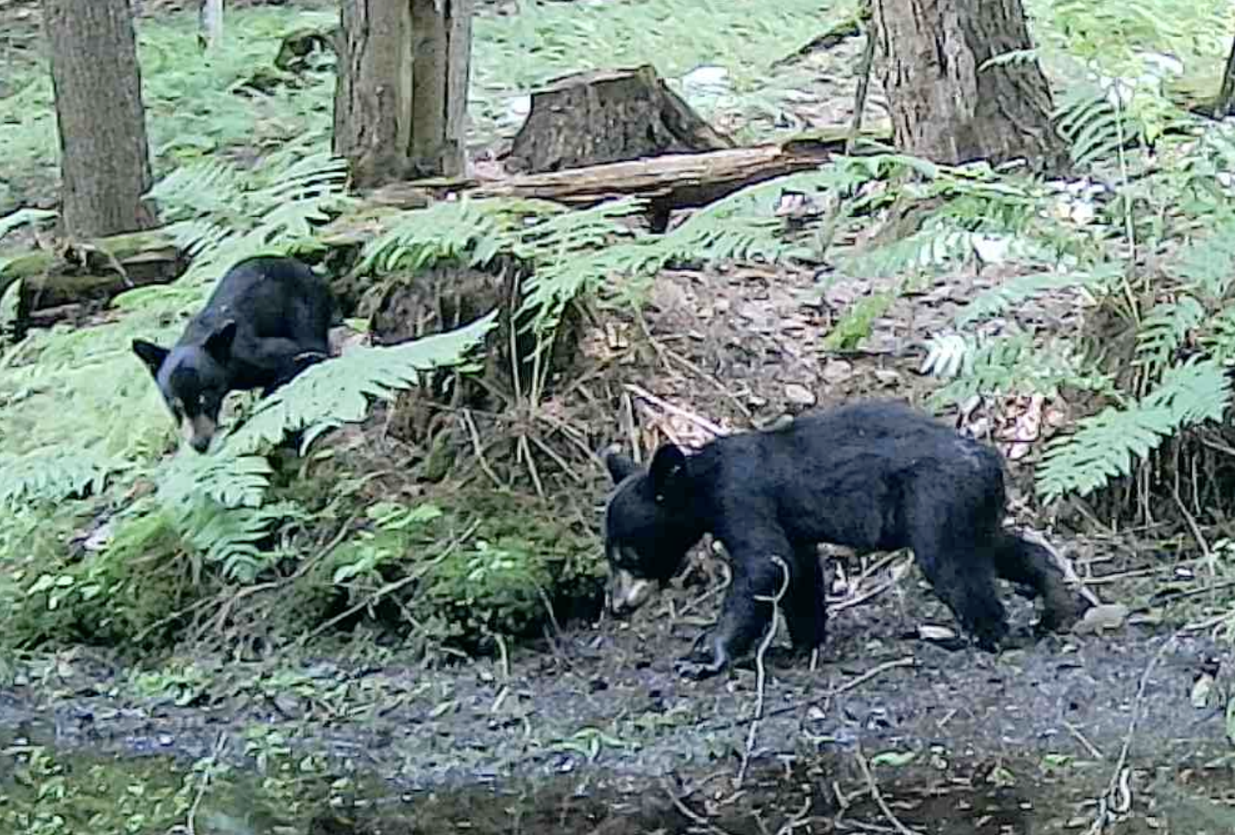 Indeed my cameras brought us many exciting treats in August: a pack of coyotes, many views of both mama and papa bear (and baby bears too!), a fastidious barred owl, a nosy skunk, and more.