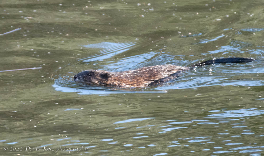 A beaver swims at the mouth of Grant Brook, Lyme NH