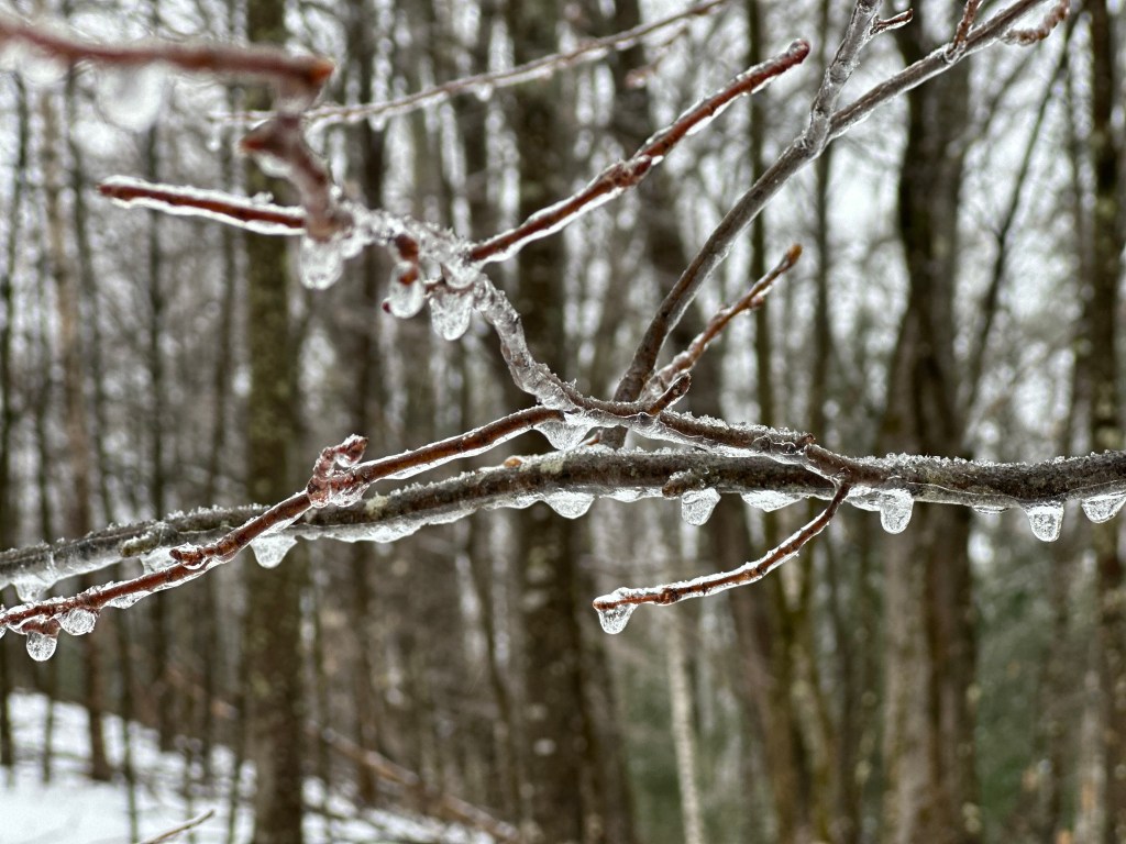 Ultra-thin ice forms along the shore of the Connecticut River.