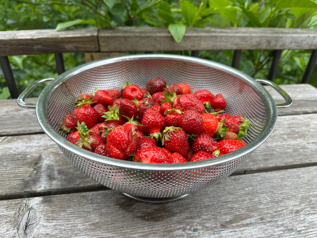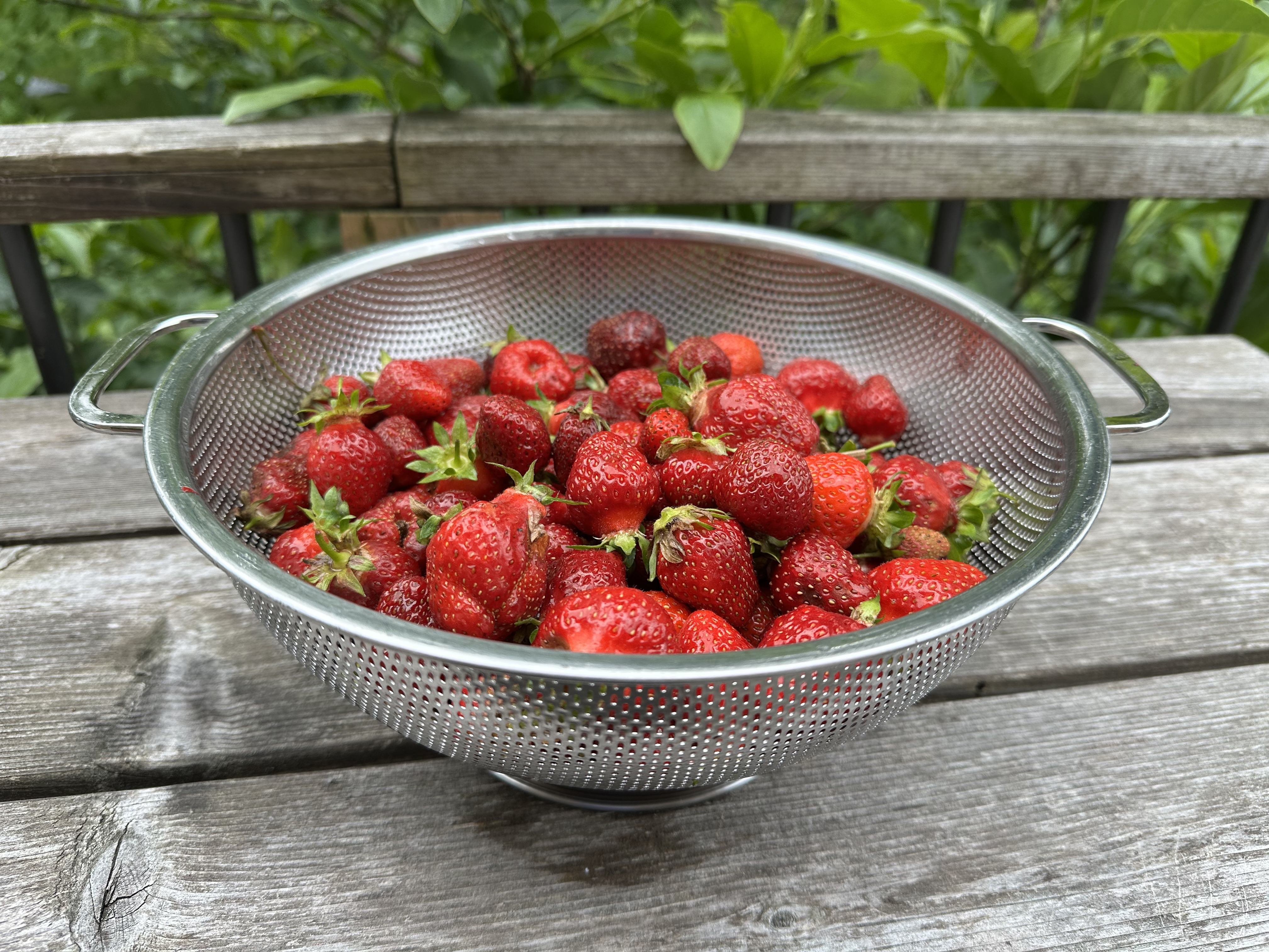 Once again it is strawberry season. I spent an hour or two of Saturday morning picking fresh, ripe strawberries at Edgewater Farm in Plainfield – while a bald eagle flew to and from its nest high in a pine tree between the field and the Connecticut River. According to friends who shared these strawberries for dessert on Sunday, they were some of the tastiest strawberries ever!