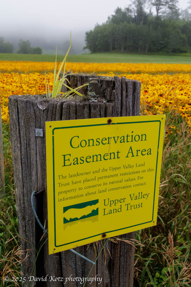 Not far down the road from my home is a luscious meadow, a former farm pasture that the owner has preserved via a conservation easement to the Upper Valley Land Trust. This meadow is popular with local deer, turkeys, and other wildlife. In recent years, the conservators have planted the roadside with wildflowers, allowing me a brilliant commute on summer mornings. Last year, I shared photos of the multicolor feast of wildflowers. This year, the field is carpeted with the yellow and orange tones of Black-Eyed Susan flowers. Today, a mildly foggy morning provide just the right atmosphere for photographs. Click through the gallery!