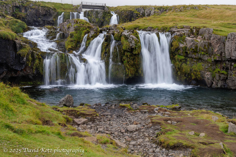I’m sneaking Kirkjufellfoss into my post-Greenland posts, although we actually visited it ten days earlier at the beginning of the cruise to Greenland. We spent a cloudy morning visiting these falls and walking a gravel path back to town, where our ship was docked. These falls, near the Kirkjufell volcano on the Snæfellnes Peninsula, are a favorite subject of photographers. (Mount Kirkjufell is often noted as the ‘most photographed mountain in Iceland.’) As with many of Iceland’s waterfalls, it is particularly challenging to capture this beautiful waterfall without a lot of people in the shot. In this case, the pathway for visitors literally passes above the falls on a low bridge across the stream, meaning any upstream shot inclusive of the whole cascade is bound to include the bridge and, today, several other tourists. Patience, and careful composition, led me to some decent shots. Read on…
