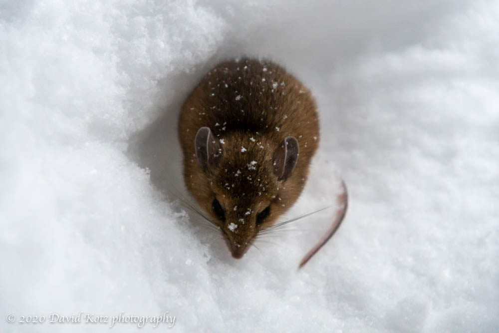 I don’t have much time to be photographic this morning, but here is a quick gallery of photos. Perhaps my favorite was this little mouse, who I first spotted hopping along the roadside. He seemed to be looking for something – perhaps the entrance to his underground home, now lost under the deep snow. He let me get closer, and eventually he scampered toward me through the deep ruts left by the few intrepid morning drivers. He found shelter between my legs, tucking in his tail, clearly grateful for a moment of peace as my legs blocked the falling snowflakes. We shared this spot, at the center of the road, snow falling quietly all around, until a car came rumbling along. I picked him up and set him beside the road, and we both went back to our day.