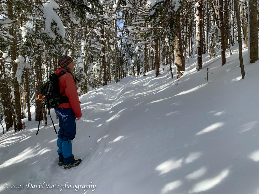 Winter truly arrived in February, with deep cold and deep snow throughout most of the month. I had nine cameras out the field – but decided, mid-month, to relocate half of them to a new area of Lyme (New Hampshire). Although the terrain is similar – rolling hills, mixed forests, rocky slopes, low elevation – I was looking for new opportunities. That day (February 16) was an incredible winter’s day: a light snow was falling as a large winter storm was winding down, so I snowshoed through deep, soft powder around my usual loop, picking up cameras. The next day, I skied a loop in a different part of town, setting up cameras in promising new locations. What did the cameras find? Check out these four short videos (all less than three minutes)… read on!